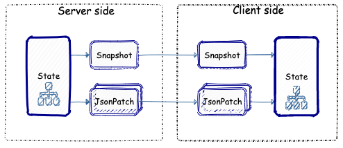 Сериализованное состояние отправляем на клиент, создаем объект PatchPack с аналогичными типами и выполняем метода decodeState.